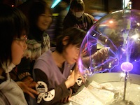 プラズマボールでは、不思議な紫色の発光と奇妙な動きに見とれていました。