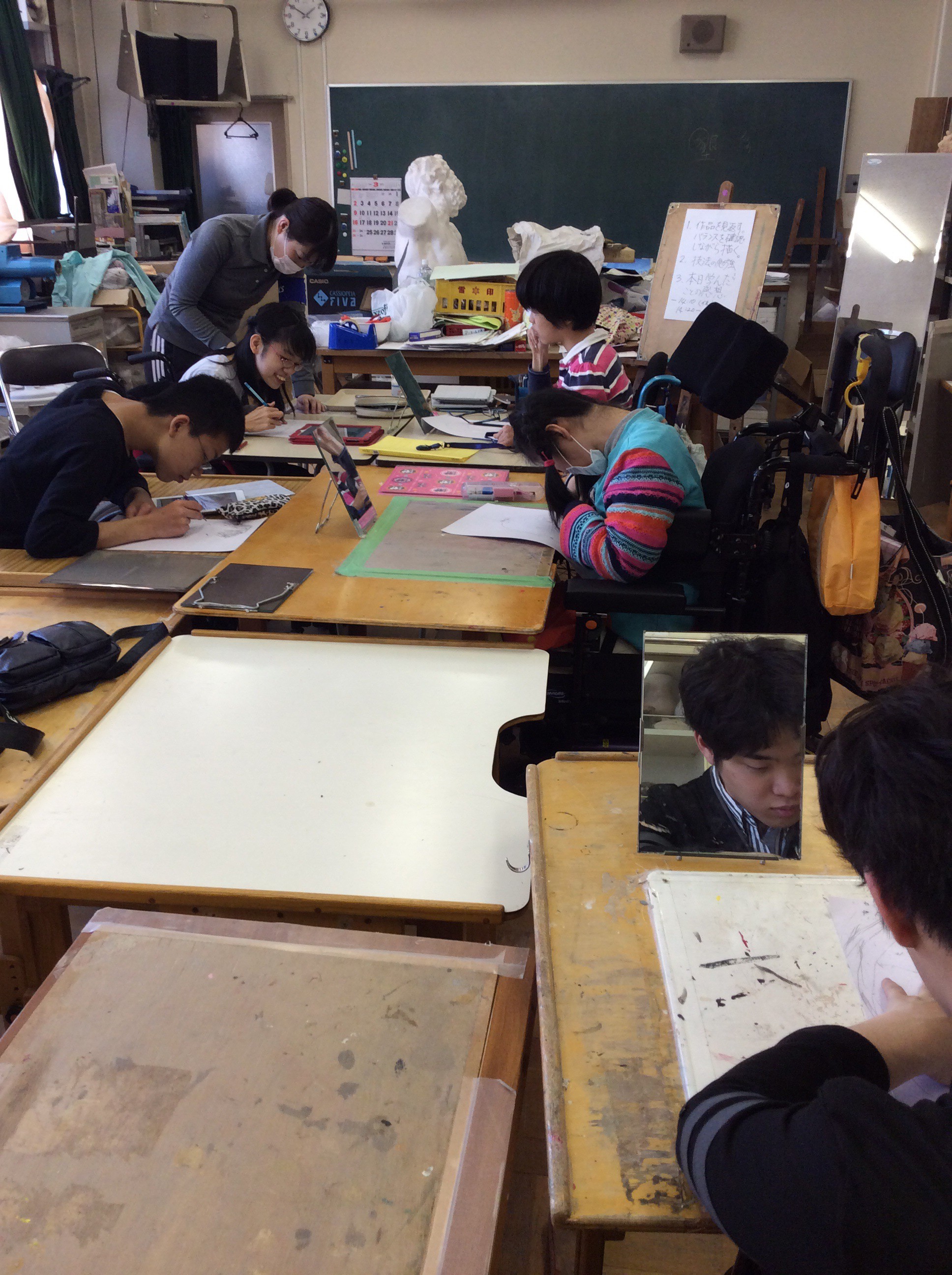 2014年4月28日 / 最終更新日 : 2019年11月6日 Suzuki Izumi 桐が丘日記 高Ⅲ 造形 自画像 高等部Ⅲコースでは 自画像の制作が行われています。 鏡や自分の顔をうつしたタブレット型端末などを よく観察して自画像として表現しています。
