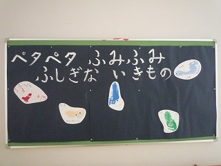2014年5月23日 / 最終更新日 : 2019年11月6日 admin 桐が丘日記 図工 「ペタペタ ふみふみ ふしぎな いきもの」 図工の時間に足型をとっています。 目をつけてみると「たこ」「いか」「うちゅうじん」と いろんなものに見えました。 台紙の字は介護等体験の学生が書いてくれました。