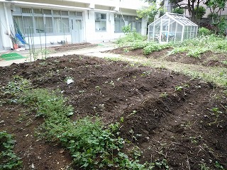 施設併設学級には校舎の真ん中に畑があります。