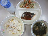 2014年10月17日 / 最終更新日 : 2019年11月6日 AoyamaTaeko 桐が丘日記 秋の味覚 急に涼しくなってきました。 給食は秋の味覚がたくさん登場しています。 10月14日(火)の献立 栗ごはん すまし汁 さわらのみそ照り焼き もやしときゅうりのごま酢和え 牛乳