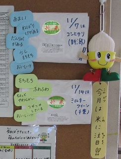 2014年11月25日 / 最終更新日 : 2019年11月6日 AoyamaTaeko 桐が丘日記 お米を味わおう! お米のおいしい季節! ということで今月は、色々な種類のお米やお米料理が登場しています。 7日は新潟のコシヒカリ、14日は千葉のミルキークイーンと 毎週金曜日には、産地も種類も異なるお米を食べ比べてみています。 21日は宮城のササニシキ。「あっさりしている」「弾力がある」「高級感がある」など、 普段よりもよーく噛んで、違いを味わって食べている様子でした。 11月21日(金)の献立 ごはん(ささにしき) おでん 白菜と小松菜のごま和え 牛乳