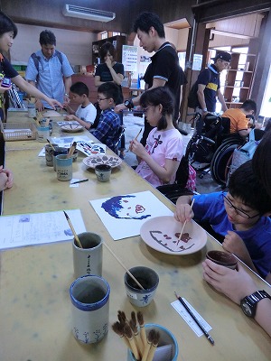作業の様子や登り窯を見学し、皿に絵を付けてきました。