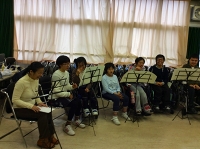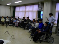 濱野さんのバリトンの力強い豊かな声に導かれ男子生徒の歌声が激変!指揮の尾花さんはピアノを弾きながら、笑顔で曲作りを指導してくださいました。この日の練習には、筑波大学附属視覚支援学校音楽科の生徒さんも参加。簡単な自己紹介をしただけなのに、あっという間に打ち解けて音楽に集中する参加者たち。「音楽はバリアフリー」ということを実感したのでした。