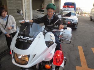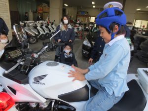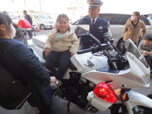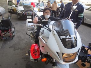 白バイやパトカーにも実際に乗ることができました。「カッコいい!!」という声が上がっていました。