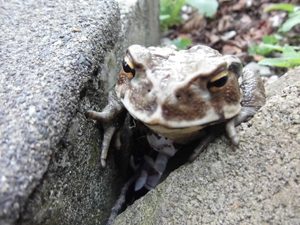 集合写真を撮影した玄関前には,大きなカエルも登場しました。