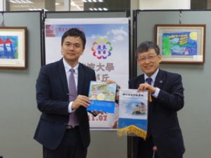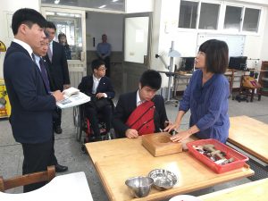 先生たちと一緒に昼食をとり、記念品の交換や記念撮影をしました。