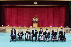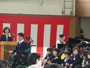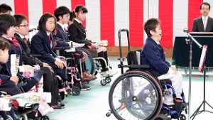 校歌や迎える歌「命が羽ばたくとき」の指揮は中学部3年生が担当しました。