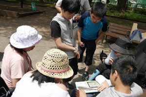 みんなでお昼ご飯を食べて、総合的な学習の時間の視点で公園付近を散策…