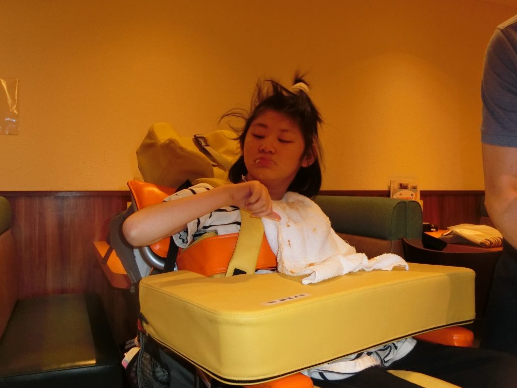 アトラクションは,ピクシーカップとウォーターキャノンに乗りました。ピクシーカップでは,慣れてくると顔を上げて周りを見たり,風を感じたりして楽しんでいました。