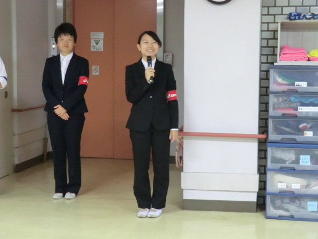 離任式。柔らかい表情や声であいさつをしてくれました。