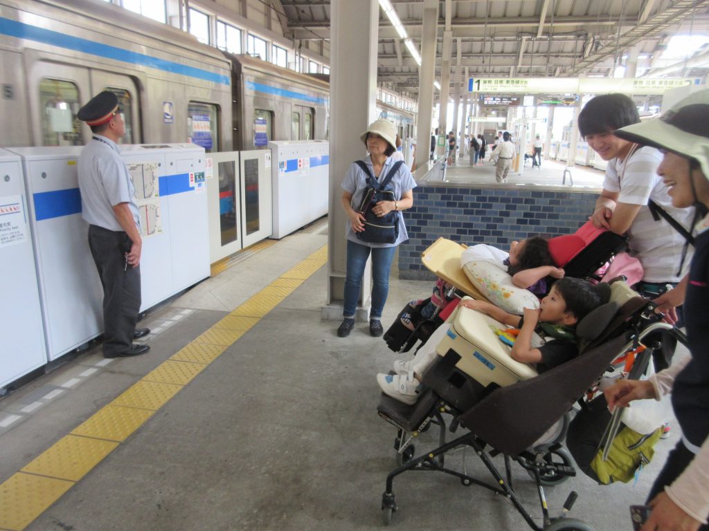 帰りは,切符を買って,電車を乗り継いで学校まで戻りました。 子どもたちは、初めて乗る電車に目を輝かせていました。