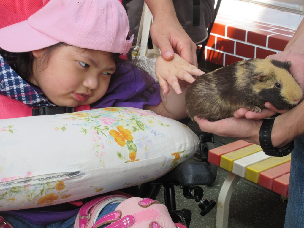 動物園には,ヤギ,ポニー,モルモット,ウサギなどがいました。 見慣れない生き物たちに子どもたちは興味津々で,手でやさしくなでるなどしながら,かかわることができました。