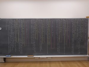 最初の話をする。先生が黒板に書く。先生は相当のスピードで書くが、Aさんの待ちきれない様子が後ろからよく分かる。両手を動かして、先生早く書いてと言っているようだ。